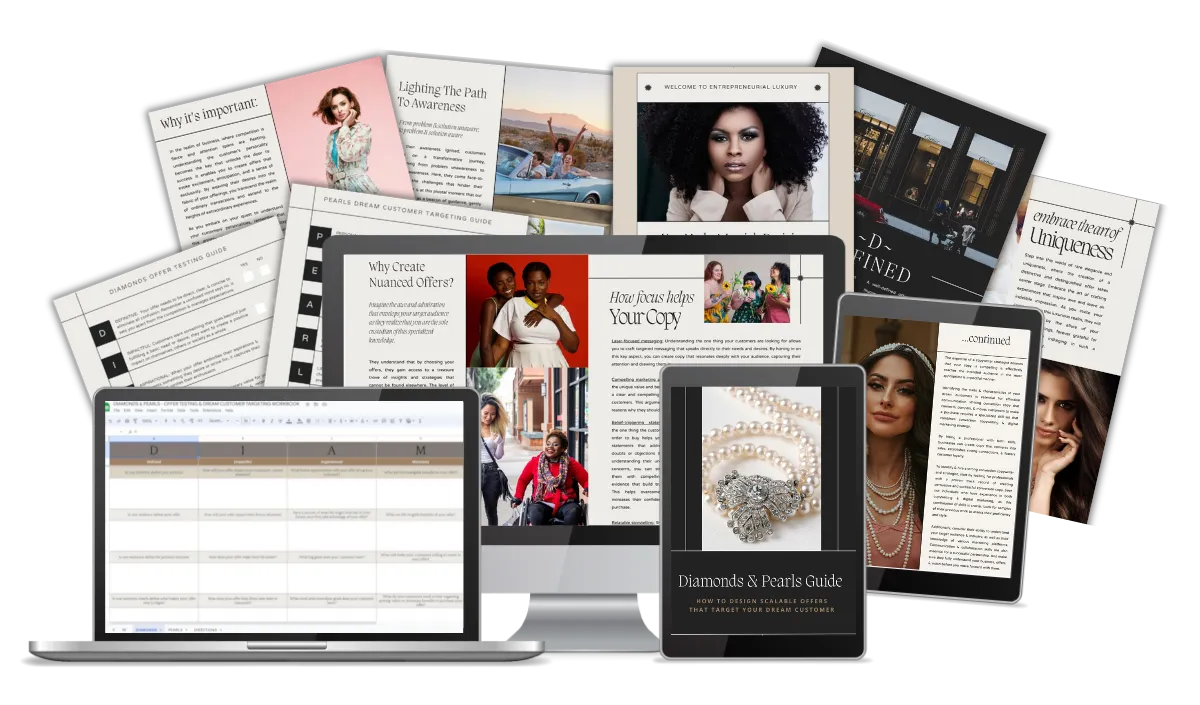 Use the diamonds & pearls framework, workbook, & ebook to fine-tune your copy, test your offer, & tailor your messages to your target audience. Having the ebook & workbook will simplify the process.