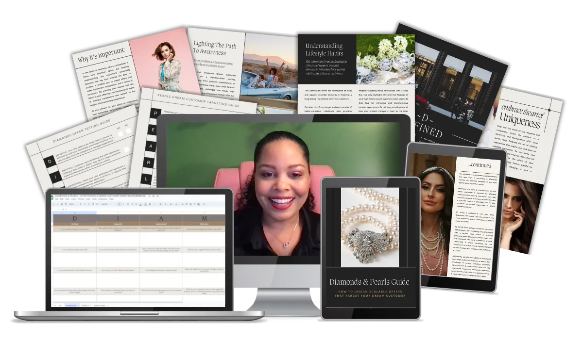 You fill in the diamonds & pearls workbook and then hop on a call to make sure it's accurate & get your most pressing marketing questions answered.
